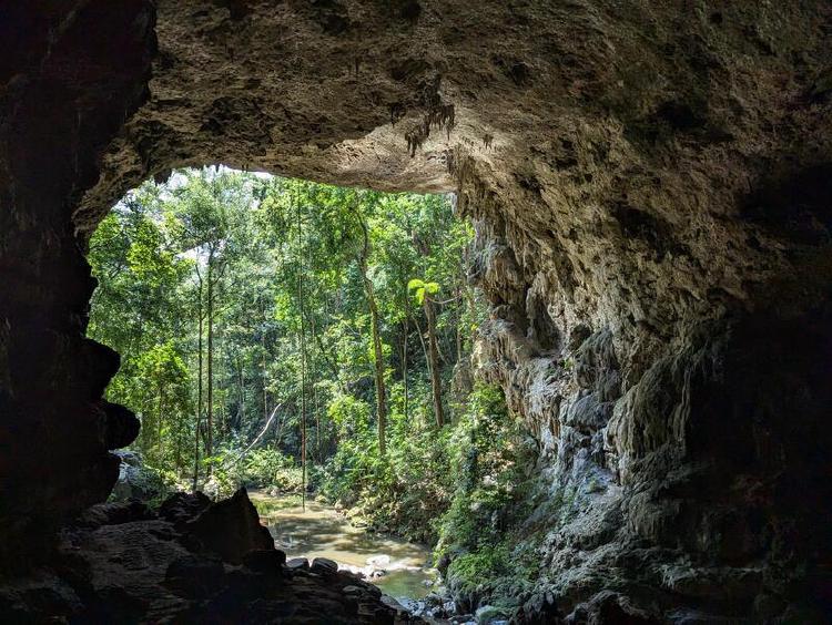 Leider waren die Strassen in ziemlich schlechten Zustand und können eher als Dreckpfade beschrieben werden. Unser Mietauto kam mit 4x4-Antrieb aber gut zurecht und Alex freute sich über die Herausforderung, um die Schlaglöcher und tiefen Gruben zu manövrieren. An einem Punkt war es aber Endstation und wir mussten einen Umweg hinter einem Haus rum und über die Wiese machen. Wir schafften es so zum Eingang der Rio Frio Höhle, in die wir natürlich rein kletterten.