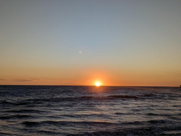 Mit dem Bus kamen wir schnell und günstig am Pier an. Dort schlenderten wir durch den Fischmarkt und Alex und Sascha gönnten sich ein Duzend Muscheln. Danach stillten wir unseren Hunger mit leckeren Pupusas und kühlten uns mit einem Glacé ab. Nach einem kurzen Halt bei einem Aussichtspunkt, wo Fische getrocknet wurden, nahmen wir den Bus zurück. Sascha zeigte uns einen Strand, den wir noch nicht kannten. Dort tranken wir Bier, spazierten in Felshöhlen und vergnügten uns in den Wellen. Zum Abschluss unserer Zeit am Meer wurden wir mit einem perfekten Sonnenuntergang belohnt.